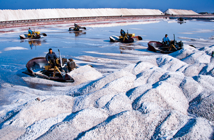 ◆熊希新 走進鹽灘,你會發現有很多蘆葦,它們或聚集于洼地,或佇立在溝旁,千姿百態,各伺一方,像一群群綠衣衛士守護著一座座皚皚的鹽山和一塊塊波光瀲滟的鹽田。 咸土地是咸得出奇的,抓一把空氣都能攥出鹽來。多少年來,很少有花草樹木能在...