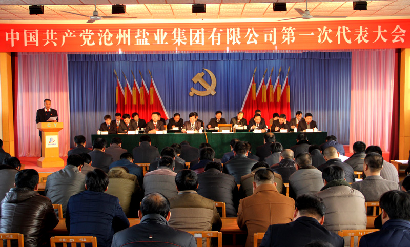2016年12月30日,中國共產黨滄州鹽業集團有限公司第一次代表大會勝利召開。來自公司各總支(支部)的119名代表參加了會議。大會審議通過了上一屆黨委、紀委工作報告,選舉產生了第一屆黨委委員和紀委委員,分別是(按姓氏筆畫排列):黨委委員王化池、文興峰、劉建軍、李金營、李蜻海;紀委委員于福廣、劉金偉、張春強、高志勇。在隨后召開的第一屆黨委第一次會議和紀委第一次全會上,劉建軍同志當選為黨委書記,李蜻海同志當選為黨委副書記;張春強同志當選為紀委副書記。