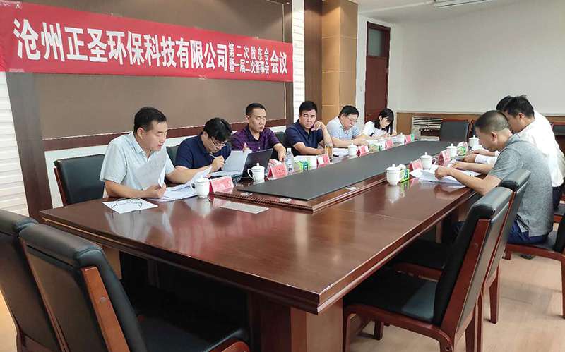 8月26日,在集團公司三樓會議室,滄州正圣環�?萍加邢薰窘M織召開了第二次股東會暨一屆二次董事會、監事會。