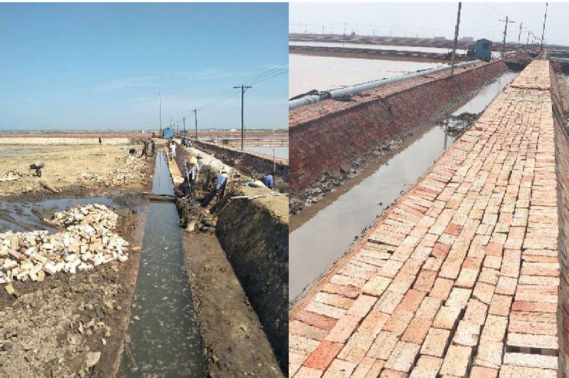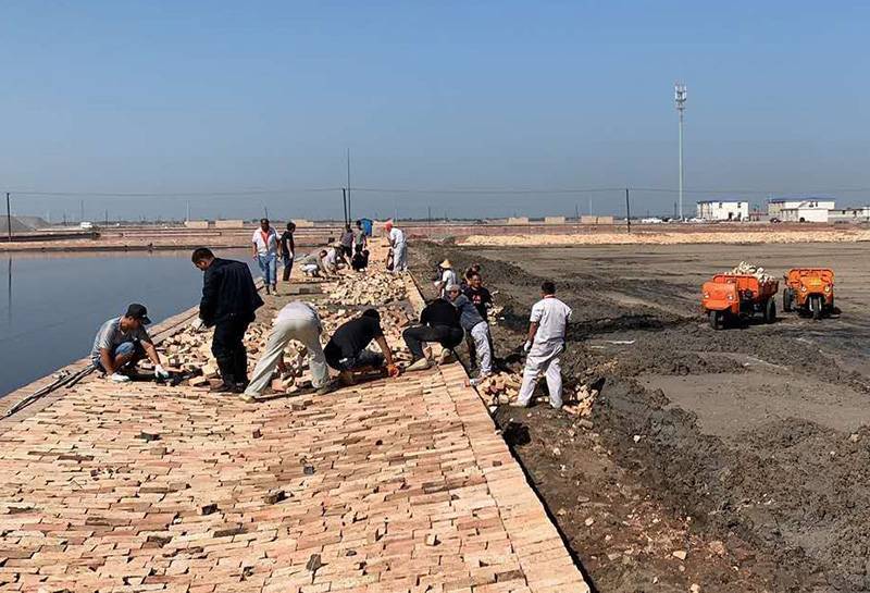 在抓緊進行灘田技改工程的同時,長蘆公司還全面啟動了灘田文明生產工作,修整溝壕鹽道,軋實趕鹵池,清除雜草,規劃設備區域和車位,并對四、五、六工區每個隊1副灘推行了灘田堤埝護氈工程,有效提升了灘容灘貌。截至目前,文明生產戰役已近收尾階段,累計完成護灘埝13650米,灘田護氈14760米,合并趕鹵池4629公畝.