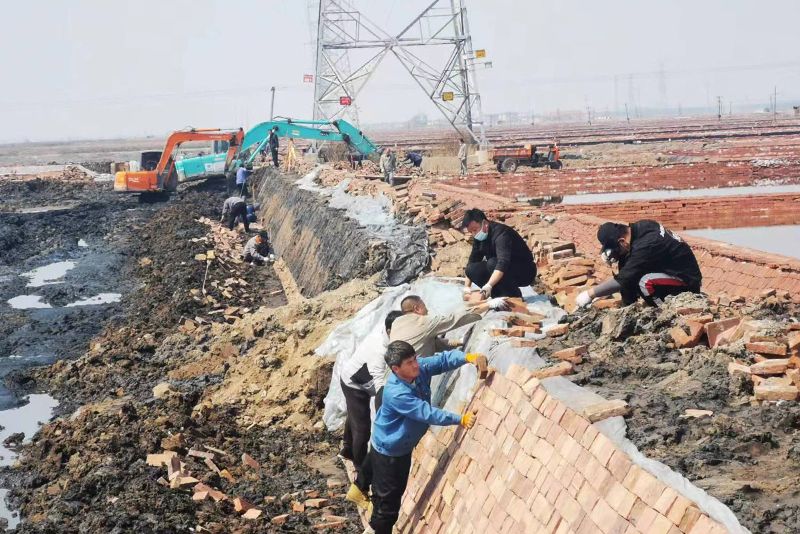 2022年4月8日,是渤海新區港城區結束疫情封控的第二天,物流公司承接的長蘆公司的保鹵圈技改工程也在這一天勝利竣工。物流公司全體人員看到又一項工程完工,黝黑的臉上綻放出勝利的笑容,工程也得到了長蘆公司各級部門的一致好評。為加快長蘆鹽業保鹵圈技改工程、保證鹵水正常調配,物流公司包括機關后勤人員在內的全體人員自愿封控在場區,全身心投入到長蘆公司灘田技改“會戰”中,經過連續8天的努力,共砌磚6.5萬塊,如期完成了78號、80號灘保鹵圈技改任務。