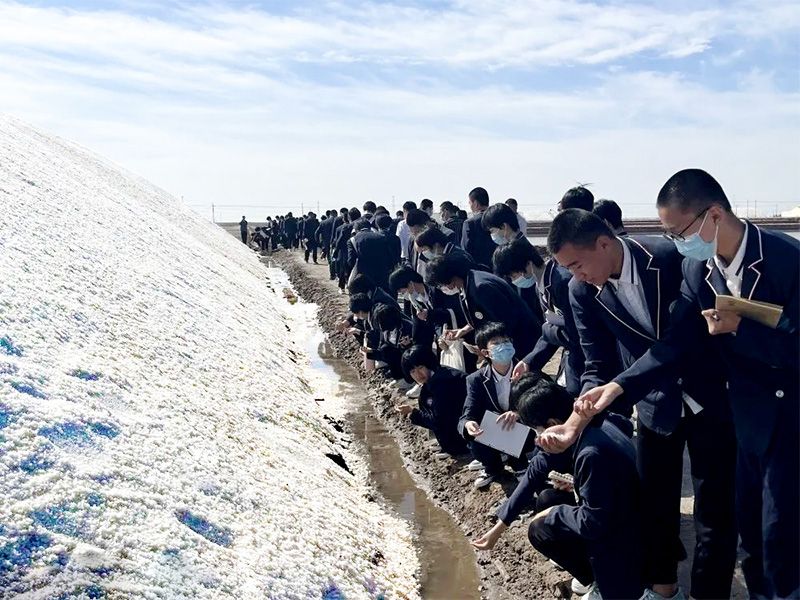 為使學(xué)生近距離接觸和體驗(yàn)家鄉(xiāng)文化,9月24日,黃驊市教育局副書記張中興、第五中學(xué)校長韓金峰帶隊(duì),黃驊市第五中學(xué)80余名師生到公司開展“鹽”學(xué)之旅實(shí)踐活動。