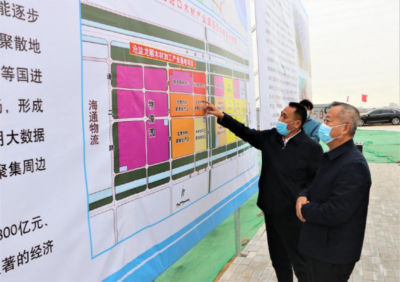 10月27日,滄州渤海新區黨工委副書記、管委會主任,黃驊市市委副書記、市長宮建軍帶隊,率領滄州渤海新區黃驊市重點項目觀摩團來滄鹽龍順木材加工產業基地項目進行觀摩指導。滄州渤海新區黃驊市四套班子相關領導,各功能區、三大集團、各科局、鄉鎮主要負責人陪同調研。