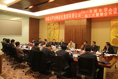 3月5日,公司召開了2011年度股東會暨第二屆董事會第三次會議,中鹽總公司總經理助理胡紅江,滄州市國資委主任、黨委書記李任放,滄州市國資委副主任、黨委副書記孫壽常,滄州市建設投資公司總經理鄧文忠及董事、監事共18人參加了會議。