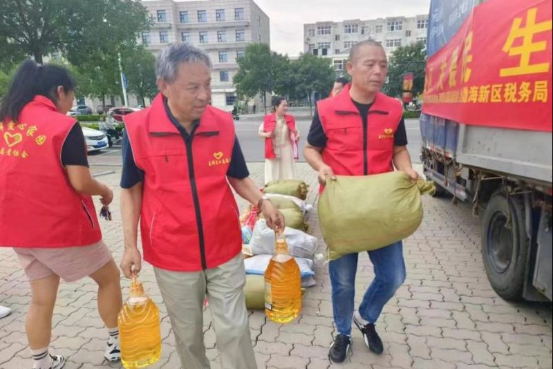 7月29日早晨5時,張元彬攜妻兒與所屬的渤海新區(qū)黃驊市港城區(qū)春暉志愿者團隊聯合渤海新區(qū)黃驊市紅色朝陽志愿者團隊,共計50余人驅車四百多公里前往保定淶源愛心互助家園,為當地孤寡老人及兒童送去了衣服、被子、鞋、米、油、書包、筆等生活、學習物資必需物品。這是張元彬全家第三次去淶源山區(qū)進行志愿服務。