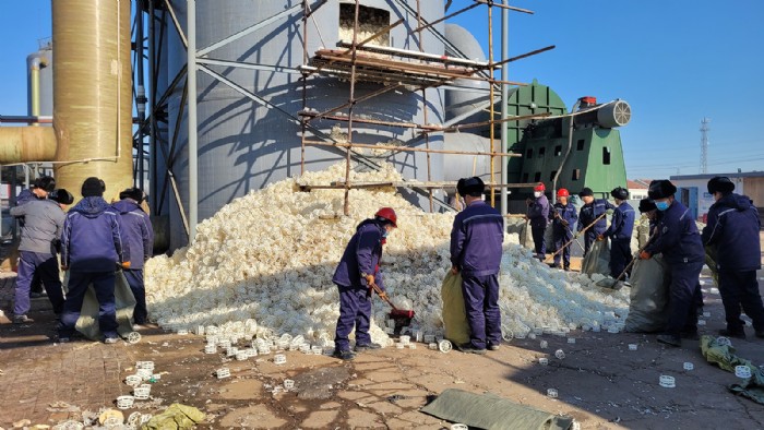 溴素二廠廠區(qū)南“吹出塔”始建于2017年,經(jīng)過多年高強(qiáng)度運(yùn)行,內(nèi)部填充物“階梯環(huán)”腐蝕氧化嚴(yán)重,致使溴素生產(chǎn)過程中吸收效果大大降低。為進(jìn)一步提高溴素吸收率,增強(qiáng)塔內(nèi)綜合反應(yīng)效果,保障溴素生產(chǎn)質(zhì)量,溴素二廠全體干部職工于1月4日開始,啟動(dòng)“吹出塔”填充物更換工作。在更換過程中,職工們協(xié)同作戰(zhàn),分工合作,僅用三天時(shí)間便完成了更換工作,比原計(jì)劃提前了兩天,為2024年溴素穩(wěn)產(chǎn)高產(chǎn)打下堅(jiān)實(shí)基礎(chǔ)。