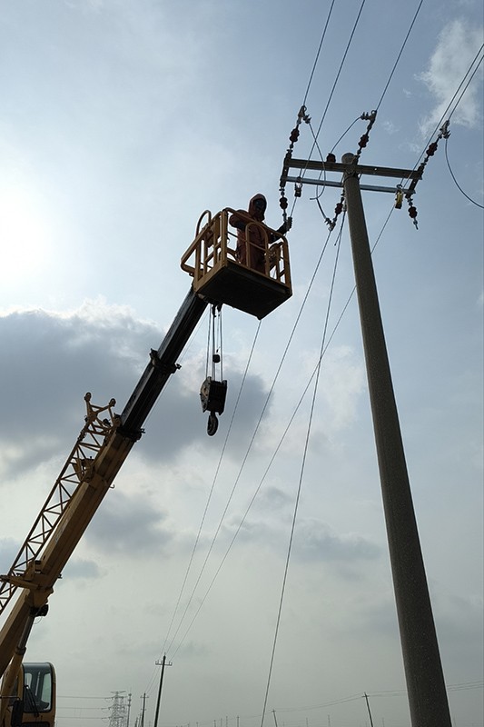 該段供電線路屬于變電二站5#線路,擔負著溴素三廠及長蘆黃驊鹽業有限公司滄南泵站的供電任務。原線路使用50平方毫米裸鋁導線,導線線徑偏細、供電能力不足,已無法滿足日益增長的用電需求,在用電高峰時段存在線路超負荷等問題,且由于年限久遠,老化嚴重,線損高,易出現故障隱患等問題。為保障正常的生產生活用電,電力公司加強組織籌備,調配人力物力對該線路進行升級改造。于2月28日開始作業,用時兩天完成了線路改造任務,并恢復正常供電。