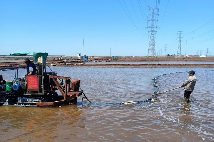 面對當(dāng)前產(chǎn)銷兩旺的大好形勢,長蘆公司凝心聚力精細現(xiàn)場管理,以嚴格的工藝標(biāo)準(zhǔn)抓產(chǎn)量、重質(zhì)量,鏖戰(zhàn)紅五月。春扒以來,為有效提升機械效率和工作效率,長蘆公司全面更新推廣了16臺套新型直吸式扒鹽機用于扒鹽作業(yè),并購置了7臺機械性能更好的小型三輪汽車替換了之前的拖拉機。