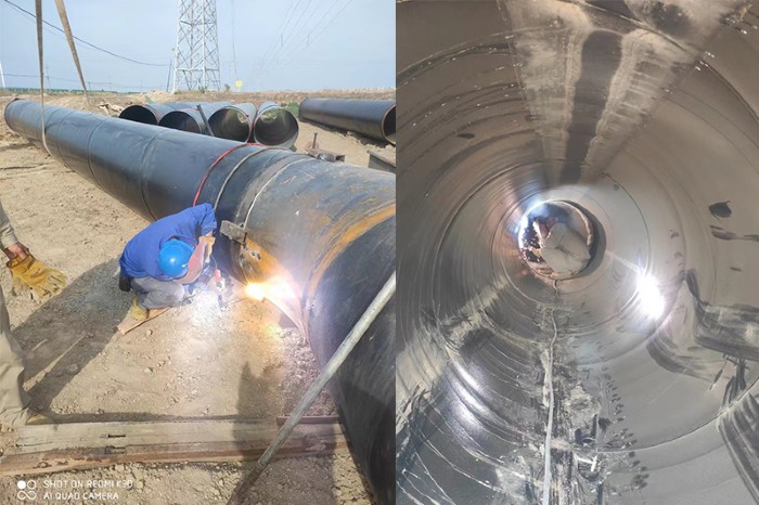鹵水泵站輸水管道是鹵水供應系統的重要組成部分,其質量和穩定性直接關系到鹵水的供應效率和安全性,焊接工作尤為重要。“師傅”們在工地現場切割、打磨、焊接,由于工作的特殊性,他們必須身穿長袖工作服,頭戴電焊帽,在烈日與弧光的雙重“烤驗”下,臉頰和后背已滿是汗水。然而,為確保管線每一道焊縫的焊接質量、每一米管道的穩定可靠,職工們抓工期,戰高溫、斗酷暑,確保鹵水泵站輸水管道工程安全、優質、高效進行。
