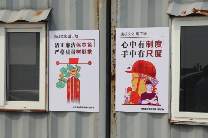 活動由黨委委員、紀(jì)委書記狄彬帶隊,專程趕赴滄鹽龍順、中鹽滄州食鹽在建項(xiàng)目現(xiàn)場,通過發(fā)放“工程項(xiàng)目建設(shè)七個嚴(yán)禁”宣傳頁、張貼宣傳掛圖等形式宣傳廉潔文化知識,使參建人員在抬頭駐足間接受廉潔文化熏陶,培育廉潔自律意識,營造了濃厚的廉潔文化氛圍。