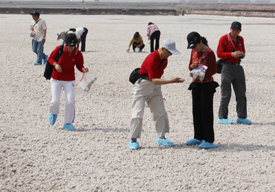 考察團參觀了公司的海鹽采扒現場、銀山碘鹽公司以及中國鹽業博物館。在海鹽采扒現場,老干部們進入結晶池,饒有興致地體驗了親手采拾原鹽的樂趣。通過參觀,老干部們對公司近幾年所取得的發展成績給予了高度評價,并對中國鹽業總公司順利推進“兩步走”發展戰略,實現做強做優目標堅定了信心。