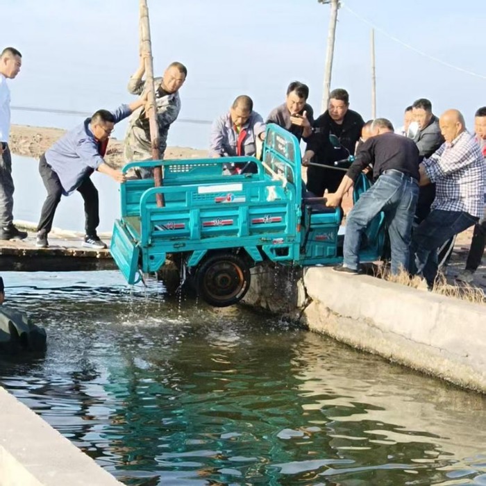 當日早上,長蘆公司制鹵二工區像往常一樣召開日常性班會,布置揚水、制鹵、安全隱患排查等工作。7點左右,當會議剛剛結束,參會職工們突然聽到不遠處傳來大聲呼救,職工魯樹、王長在馬上跑出會議室,順著呼救聲發現不遠處的第四揚水站往南的揚水渡槽處,有人騎三輪車掉進了溝里。溝中鹵水達到1.5米左右,駕駛人被三輪車壓住不能脫身,情況相當危急。二人顧不得脫去多余衣服就跳入水中,合力救出了落水人員。隨后趕到的10多名職工在工長王洪智的組織下,及時把三輪車從水中撈出。