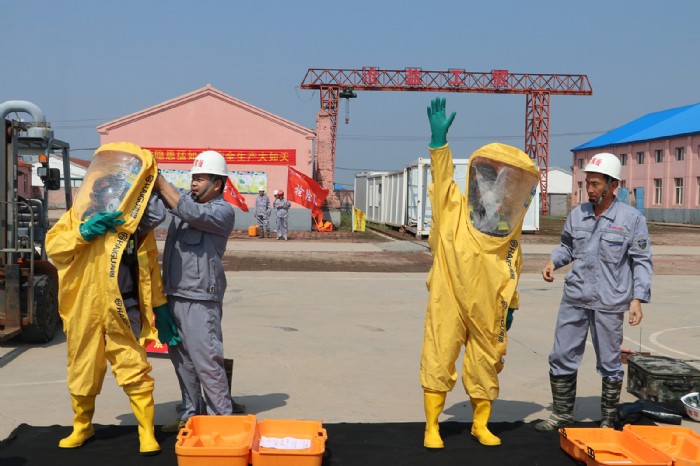 本次演練模擬了機械傷害、中暑、觸電、火災、氯氣泄漏等五類事故場景。演練前組織了空呼機、全封閉防化服穿戴等技能比武。通過演練和比武,使廣大職工了解并掌握了安全急救、消防滅火、安全疏散、傷員搜救、工藝處理、專業搶險搶修等常規操作,提高了消防搶險突擊隊快速正確、有效救援、應變處置能力,為有序高效開展應急救援、筑牢安全生產防線、完善集團公司事故應急管理體系奠定了堅實基礎。
