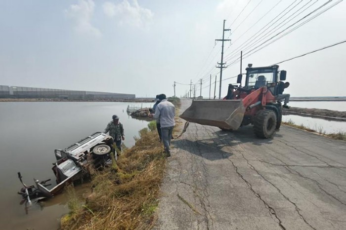 上午10時左右,海豐鎮村民駕駛三輪車途經建筑工程公司東側路段時,因避讓車輛造成三輪車失控,連人帶車沖入路北的水中。三輪車落水后迅速傾斜下沉,情況危急,村民大聲呼救。