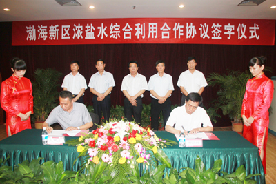 7月24日,渤海新區濃鹽水綜合利用合作協議簽字儀式在滄東發電公司舉行。在出席儀式各位嘉賓的見證下,公司總經理、黨委副書記劉建軍與滄東發電公司副總經理、海水淡化水廠廠長彭光儀正式簽訂了濃鹽水綜合利用合作協議。滄州市委常委、副市長,滄州渤海新區黨工委書記、管委會主任回學勇;滄州市政協副主席尹恩遠等領導出席了簽字儀式。