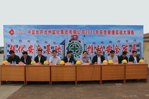 為加強對安全生產事故的防范,提高應對突發安全生產事故的處置能力,6月18日,公司在溴素一廠舉行應急救援實戰大演練。公司安委會成員、搶險突擊隊員及各單位黨政負責人、安全生產負責同志、安全員和各職能部室負責人等150多人現場進行了觀摩演練。黃驊市副市長賈兆德、黃驊市安監局局長孫進也應邀進行了現場觀摩。