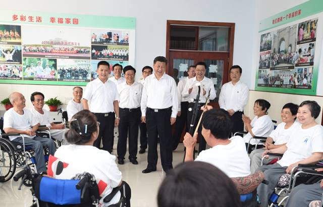 2016年7月28日,中共中央總書記、國家主席、中央軍委主席習近平到河北唐山市調研考察。這是習近平在唐山市截癱療養院看望慰問截癱傷員。(資料片)新華社發