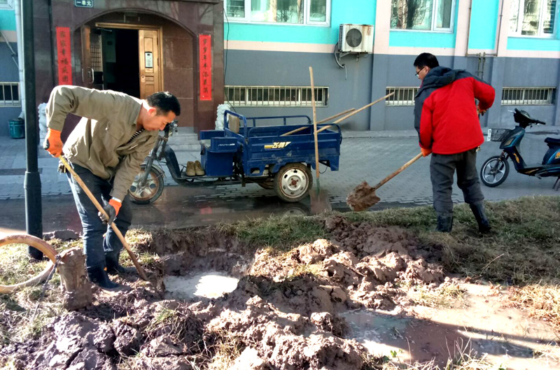 滄鹽新區(qū)黨支部組織搶修地暖管線