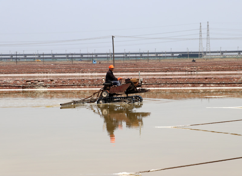 當秋扒即將過半,10月7日-10日,公司遭受了風暴潮襲擊,最大降雨量達到86.6mm。為了確保鹽田不受損失,長蘆鹽業公司領導未雨綢繆,提前停止了扒鹽,并提前保好鹵,塑苫全部拉放到位,盡最大努力降低鹽鹵損失。由于安排細致周密,采取措施果斷有效,同時各單元職工24小時全員在崗,不定時進行巡查,確保了這場災害性天氣中各灘田沒有受到較大損失,也為及時恢復秋扒生產奠定了基礎。