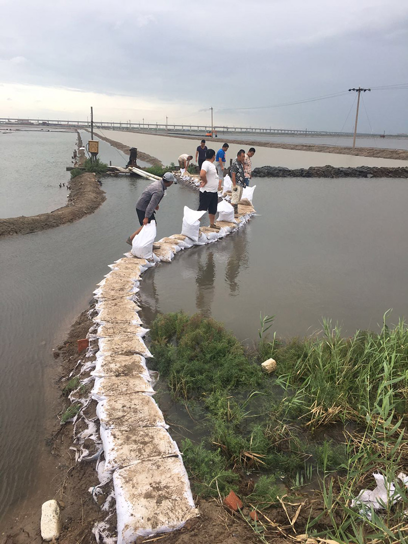 災情刻不容緩。關鍵時刻,黨委書記、董事長劉建軍,總經理、防汛總指揮王銳冒雨親臨一線,指揮抗災保產。面對險情不斷的嚴峻形勢,防汛辦公室關鍵時刻及時聯系供電公司、建筑工程公司,立即采取了調用挖掘機筑埝增高、搶險疏通和拉閘停電禁止外排淡水的超常措施,為緩解排淡壓力,避免淡水漫灘贏得了寶貴時間。長蘆鹽業公司不等不靠,斗志不減,班子成員親自帶隊,組織全體突擊隊員進行搶險救災,在風雨中砸樁、扛袋、護埝,嚴防死守,晝夜奮戰在抗災一線,以堅強的意志,不屈的精神,譜寫了又一曲抗災保產的壯歌。各部(處)室、子公司也按照公司防汛指揮部的統一部署,緊緊圍繞防汛大局,全力做好保障工作。