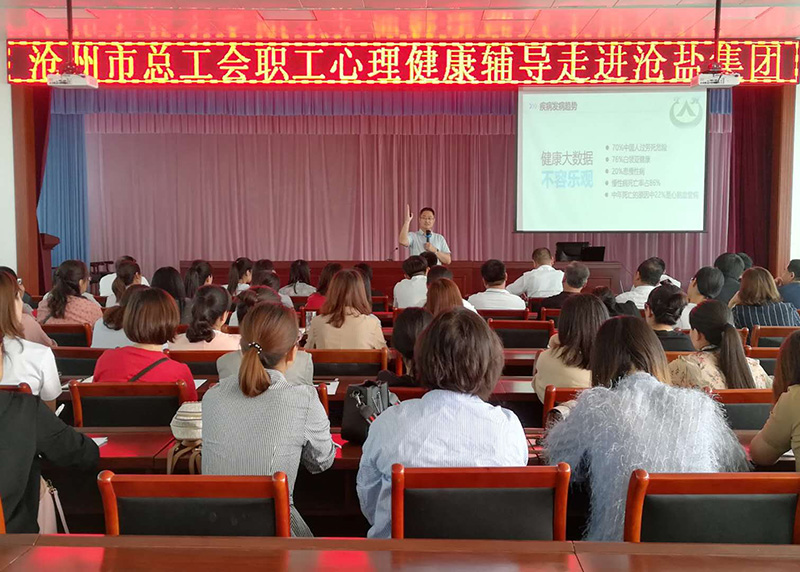 為增進職工心理健康,提高職工心理健康水平和幸福指數,5月16日,滄州市總工會職工心理健康輔導走進滄鹽。由天合心理創辦人、國家二級心理咨詢師孫先敬為公司各基層單位的80余名職工進行了心理健康講座。