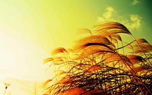 咸土地是咸得出奇的,抓一把空氣都能攥出鹽來。多少年來,很少有花草樹木能在這里抽枝展葉、吐紅滋綠,即使那些養(yǎng)在苗圃里被格外精心照料的花草,能活下來的也是寥寥無幾。然而,就是它——貌不驚人,甚至有點土里土氣的蘆葦卻靠自身的努力,頑強地生存下來,而且活得那樣坦然,站得那樣挺拔,表現(xiàn)得那樣瀟灑。它呼吸著咸澀的風(fēng)和空氣,抗嚴寒,御酷暑,經(jīng)年累月,一次次的涅槃,一代代的繁衍,為靜寂、單調(diào)的鹽灘增添了勃勃生機。